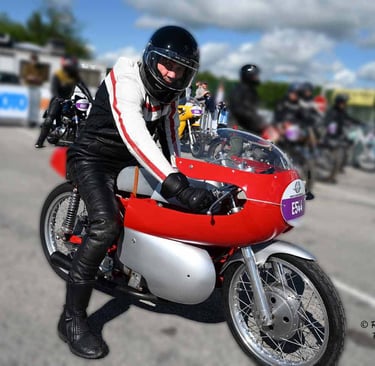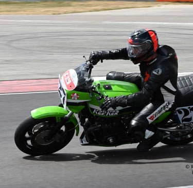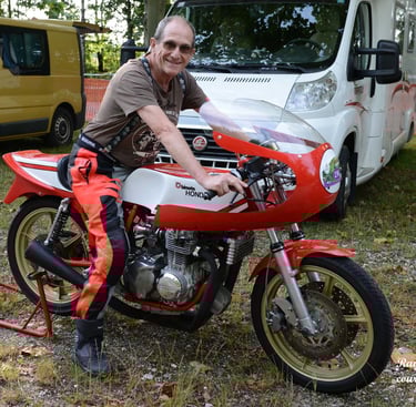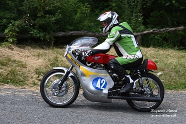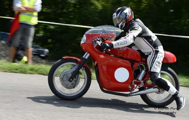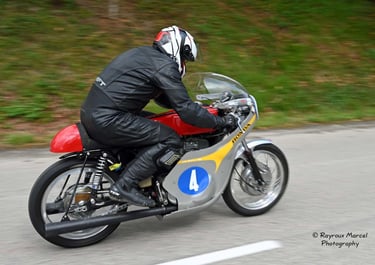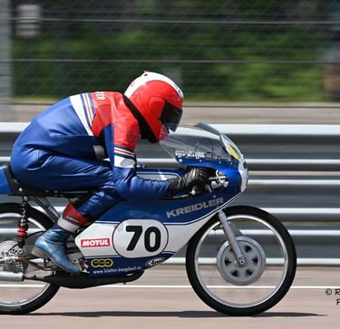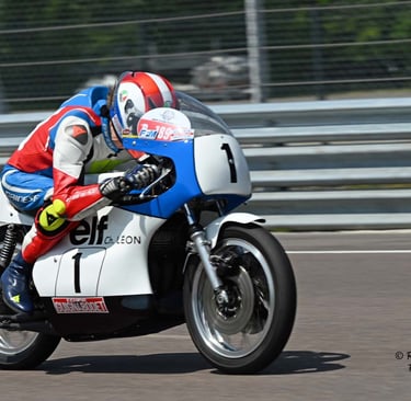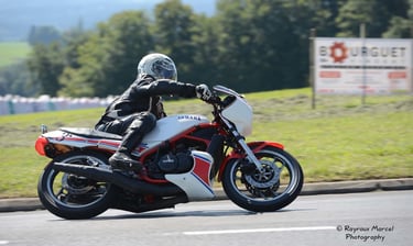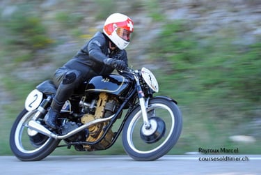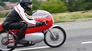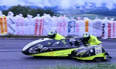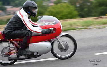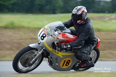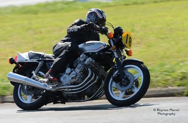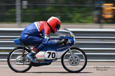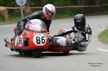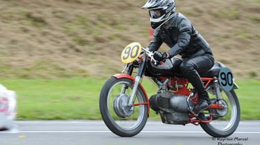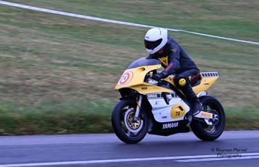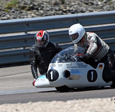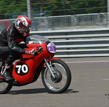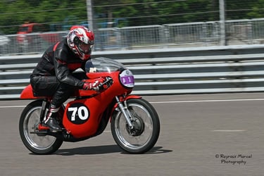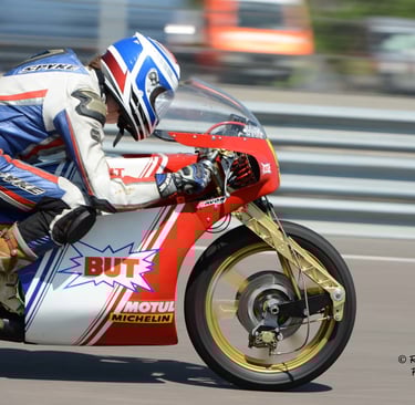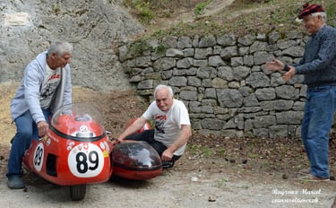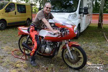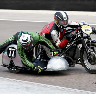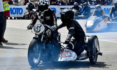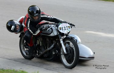 Chaque cliché raconte une histoire de passion pour les courses motos et side-cars anciens.