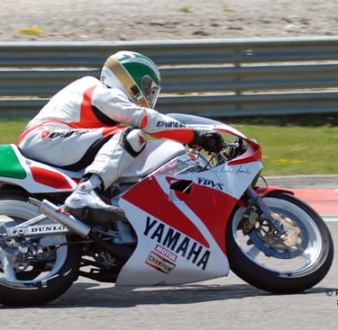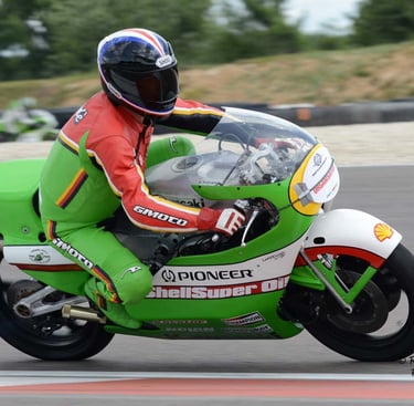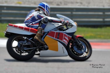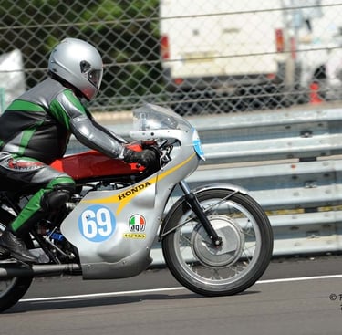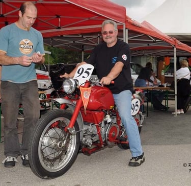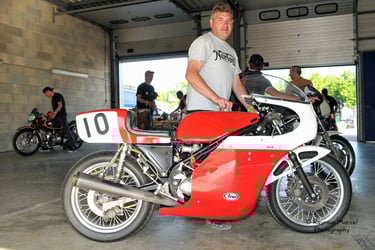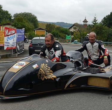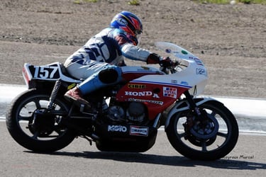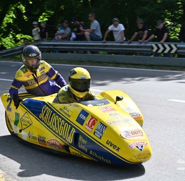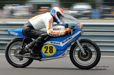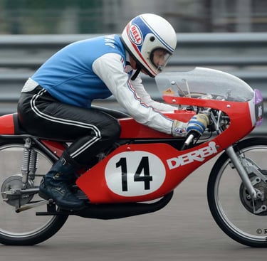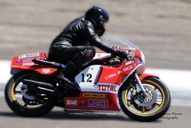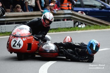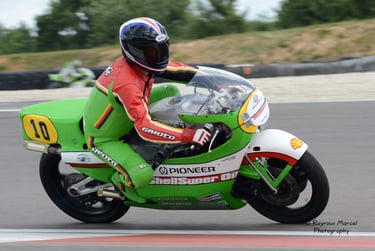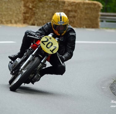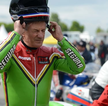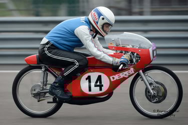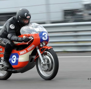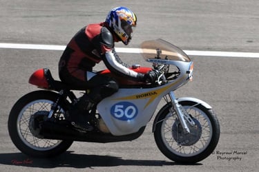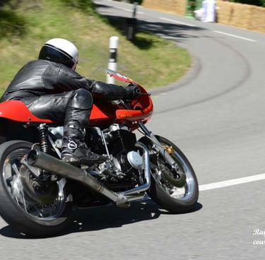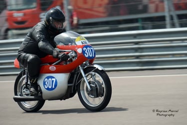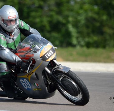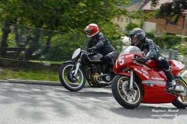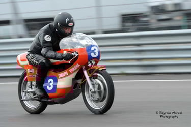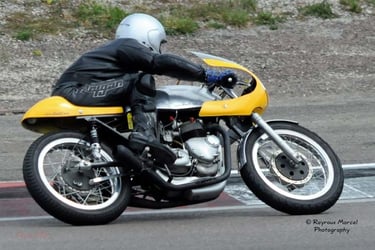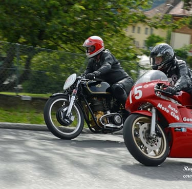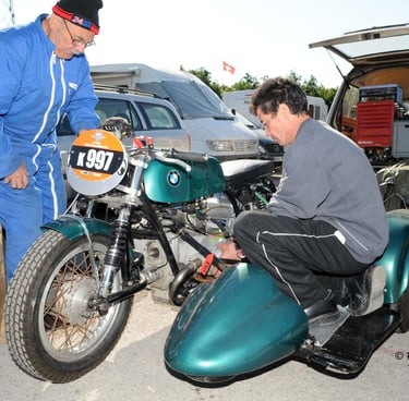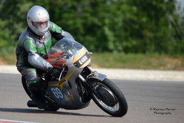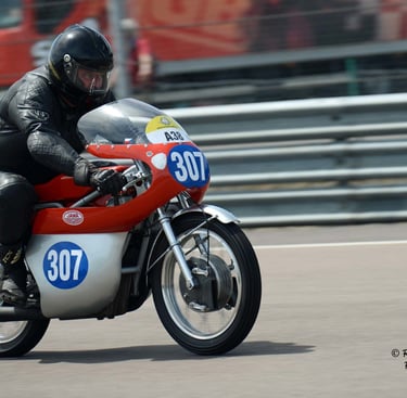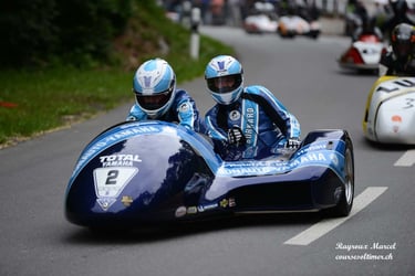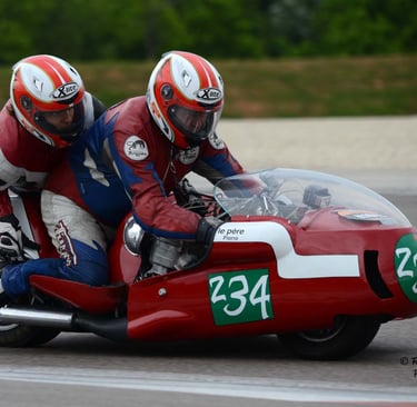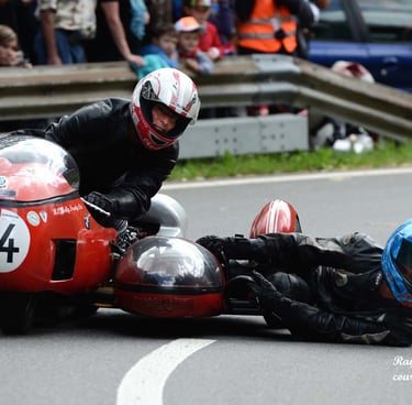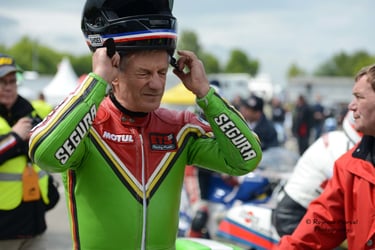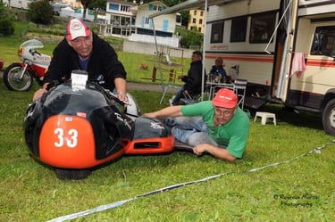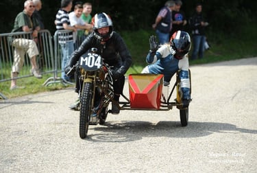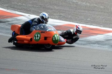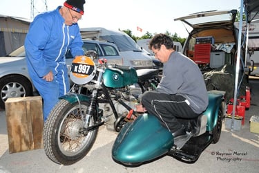 Chaque cliché raconte une histoire de passion pour les courses motos et side-cars anciens.